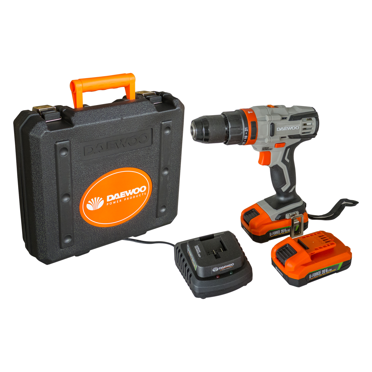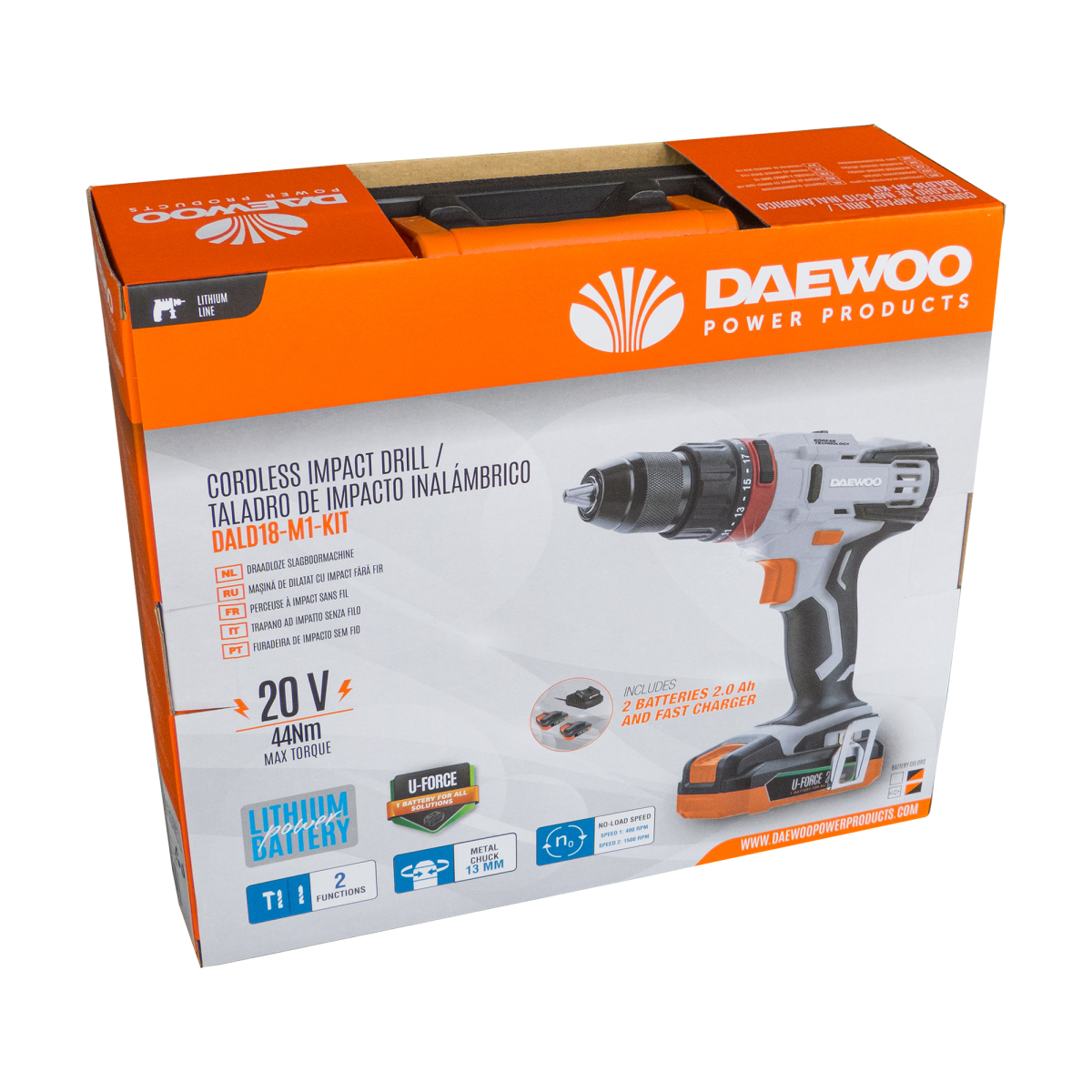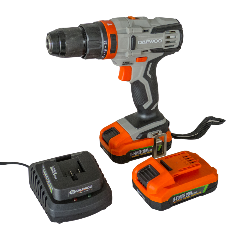 Акумулаторна ударна бормашина DAEWOO DALD18-M1-KIT, UNI-BAT, 20 V, 44 Nm, с 2 батерии 2Ah, зарядна станция 2.5Ah и аксесоари