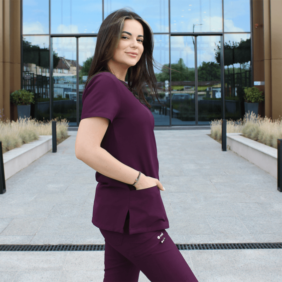 Медицински комплект BELLA е дамски комплект, състоящ се от туника и панталон.Наличен е в 9 цвята.
