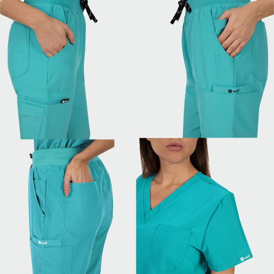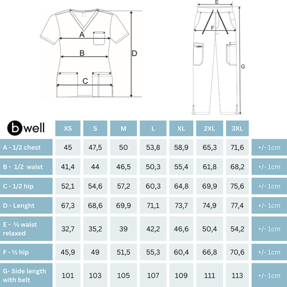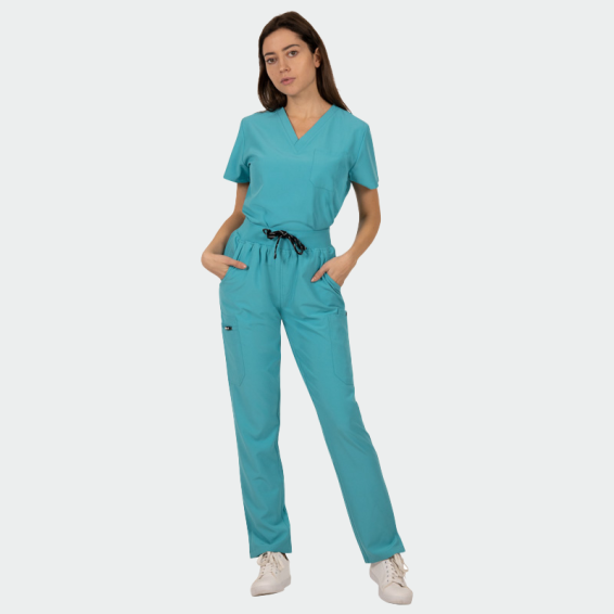 Медицински комплект BELLA е дамски комплект, състоящ се от туника и панталон.Наличен е в 9 цвята.