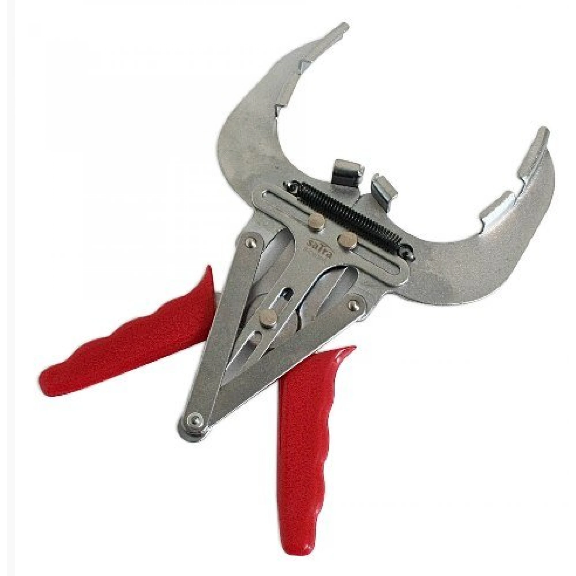 Клещи за бутални пръстени SATRA S-D80PR са проектирани за бърз и безопасен монтаж или демонтаж на бутални пръстени с диаметър от 60 до 120 мм. Оборудвани са със саморегулиращ се пружинен механизъм, който улеснява работата и осигурява стабилен захват върху пръстените. Изработени от никелирана стомана за повишена издръжливост и устойчивост на корозия. Ергономичните PVC дръжки осигуряват удобен и сигурен захват по време на работа.