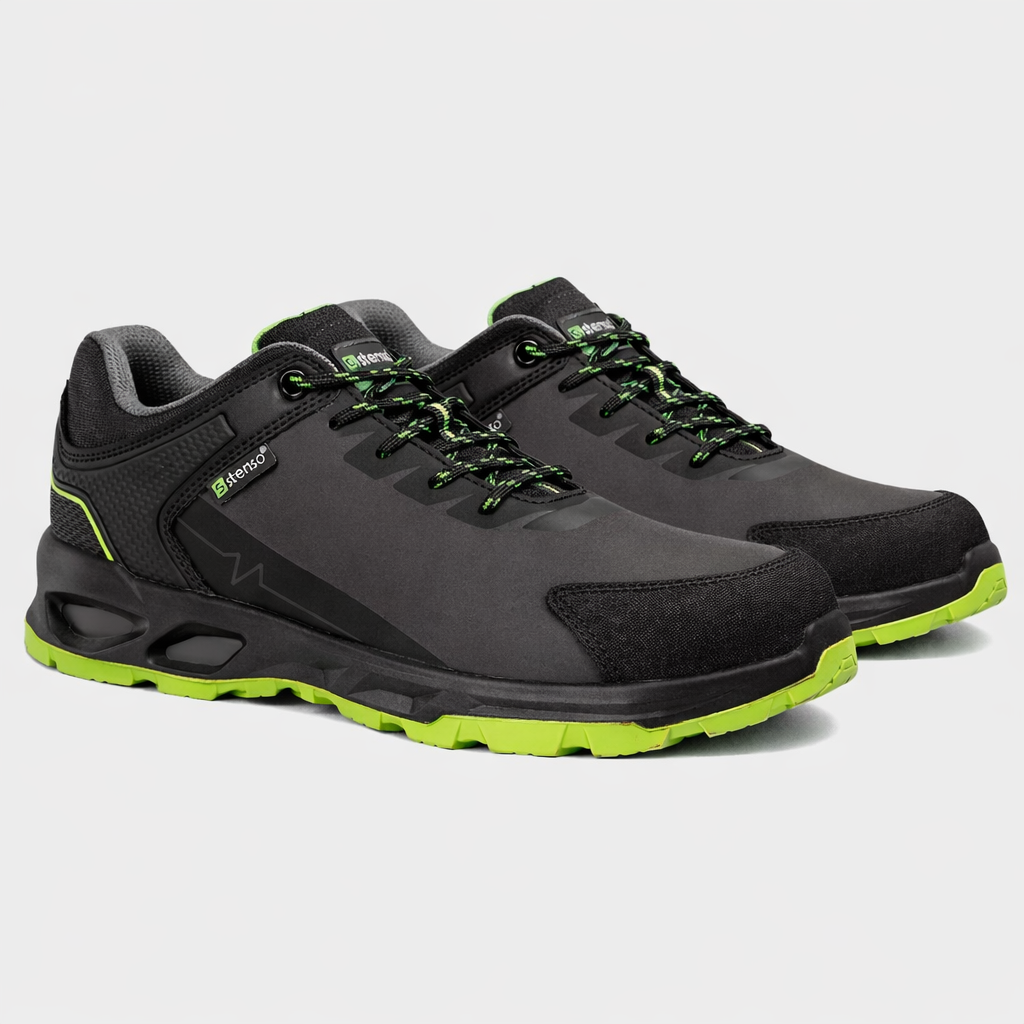 Здрави защитни обувки с модерна визия, създадени да осигурят надеждна защита и комфорт при работа в натоварена среда. Моделът комбинира издръжлива конструкция и функционален дизайн, които гарантират стабилност, сигурно сцепление и устойчивост при тежки условия на труд. Ярките акценти подобряват видимостта и допринасят за по-голяма безопасност на работното място.