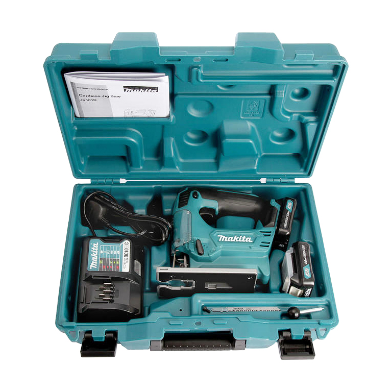 Трион прободен Makita акумулаторен с 2 батерии и зарядно, 10.8 V, 2 Ah, 0-2900 хода/мин, 18 мм, JV101DWAE