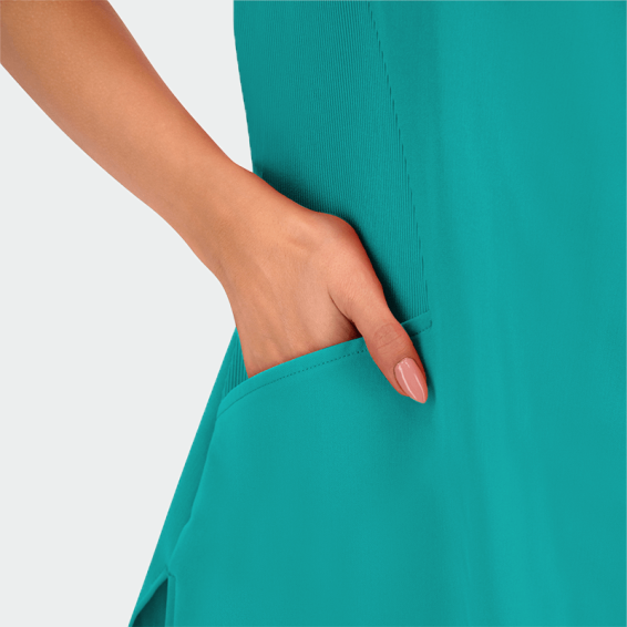 Туника JUSTINA е вталена и изработена с 3D Flex технология, която позволява по-голям комфорт по време на работа. Използвана е и технология за запазване на цвета – CL 40°С, което гарантира ярки цветове за дълъг период от време. Туниките са изработени от полиестер,вискоза и еластан ,което я прави много лека и ефирна. Материята е еластична и осигурява достатъчна свобода на движение, която се изисква за извършване на рутинните дейности.